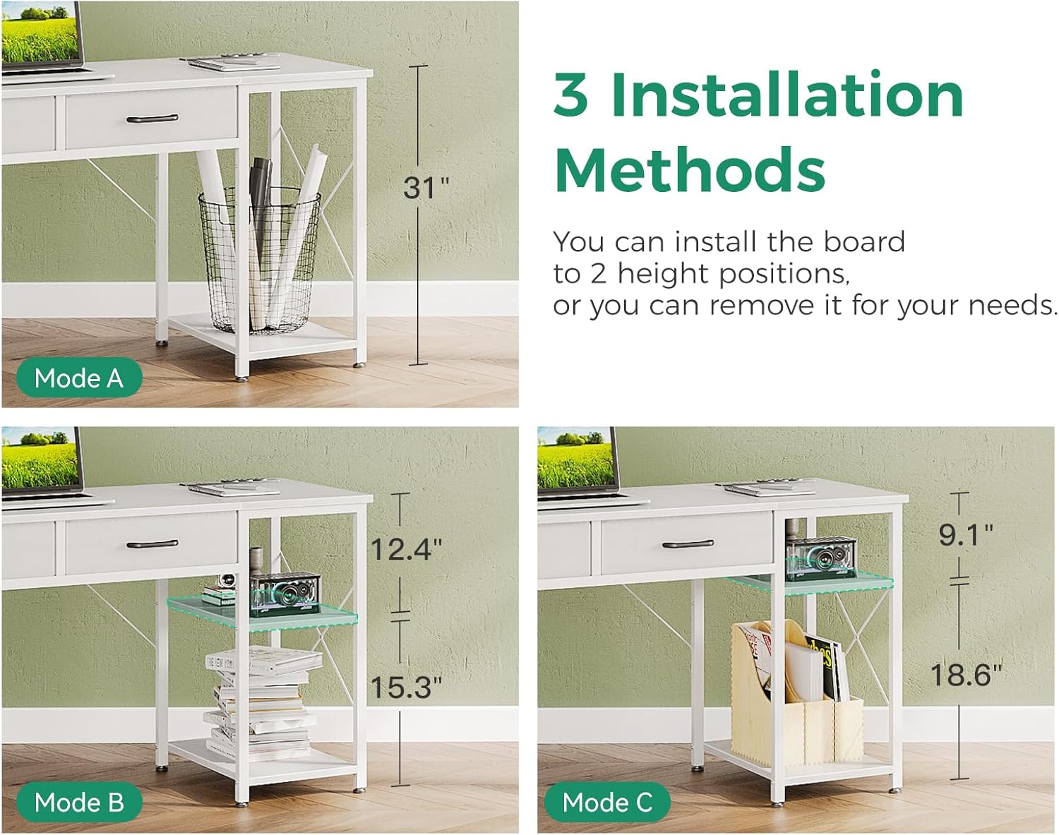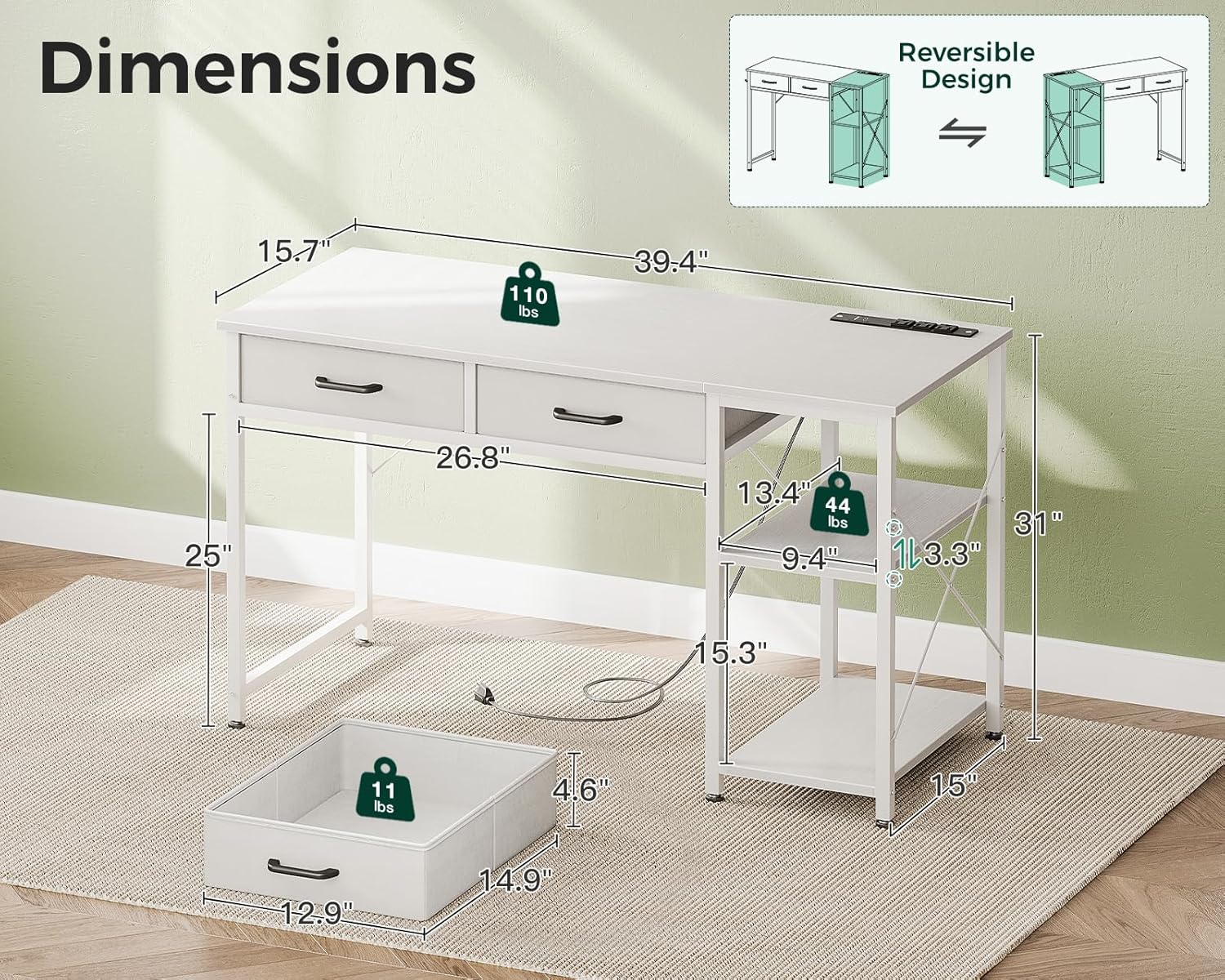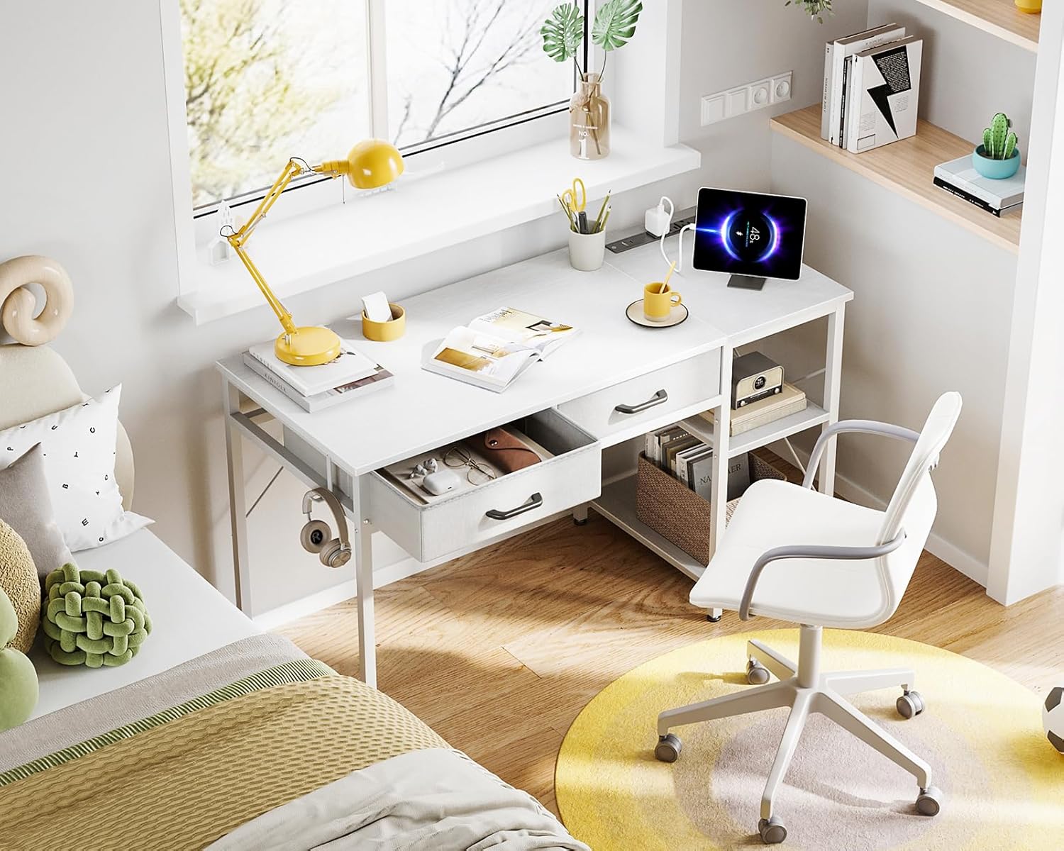 With storage shelves and a reversible design, this study table doubles as a vanity, making it perfect for various uses. The sleek white finish adds a touch of modern elegance to any room, while the compact size ensures it fits seamlessly into tight spaces.