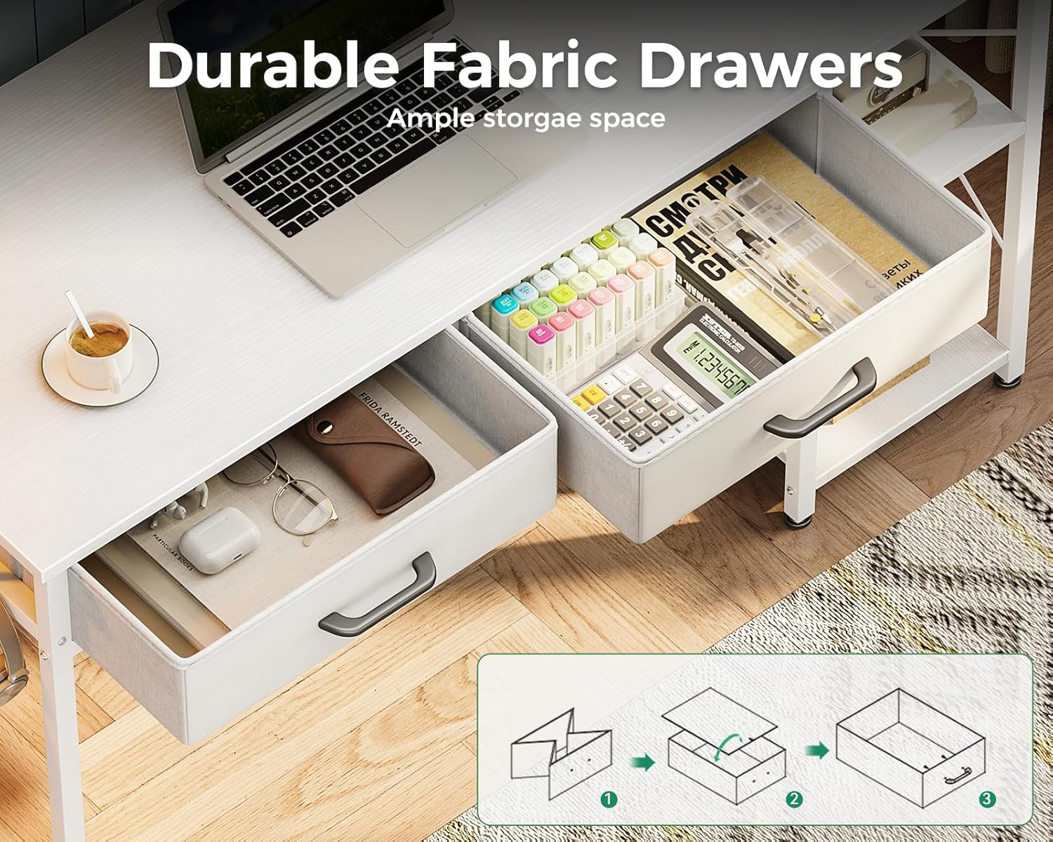 Introducing the Coleshome Laptop Desk, a versatile and compact solution for your bedroom, home office, or any small space. This 40-inch small computer desk is designed with convenience and functionality in mind, featuring drawers and a built-in power outlet for easy connectivity.