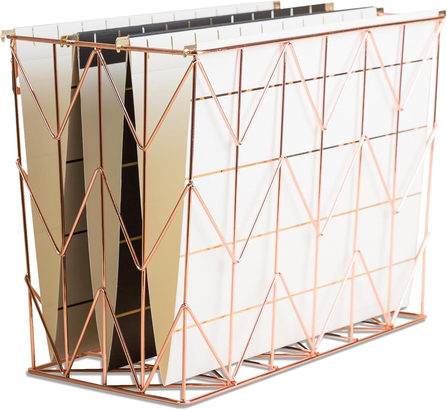 Crafted from durable wire metal, this desk organizer is built to last and is perfect for storing files, folders, notebooks, and other office essentials. The elegant Copper/Rose Gold finish adds a touch of sophistication to any office decor, making it a must-have accessory for those who appreciate both style and functionality.
